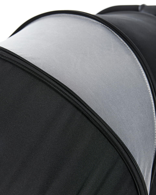 - Рама прочная, алюминиевая, при этом легкая. Установлена на большие съемные колеса.
