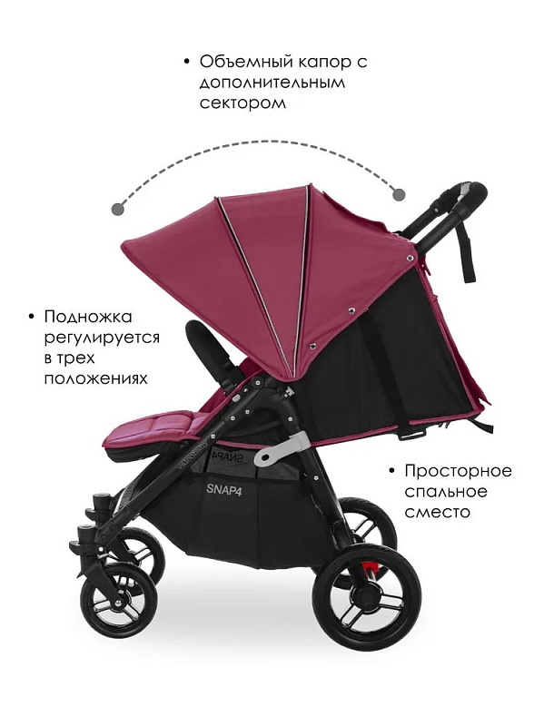 - Valco baby Snap 4 коляска имеет просторное сидение прогулочного блока с регулируемой спинкой, которая раскрывается до горизонтального положения.