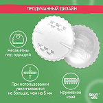 Прокладки для груди являются незаменимым предметом личной гигиены любой мамы. Мягкая текстура волокна с современным суперабсорбентом надежно впитает всю влагу и предотвратит раздражение кожи груди и сосков. Вкладыши удобно крепятся к бюстгальтеру с помощью двойного клейкого слоя, а их объемная форма обеспечит плотное прилегание к груди. Внешняя поверхность препятствует попаданию влаги на одежду и при этом позволяет коже дышать. Каждая прокладка упакована в индивидуальную упаковку для удобного хранения.