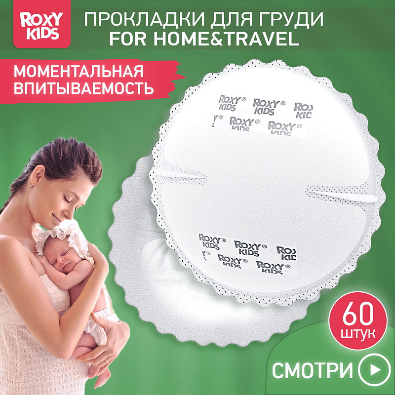 Прокладки Roxy-Kids Home&Travel для груди ультратонкие 60 шт