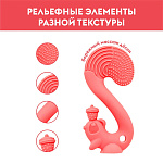 – Поможет малышу, когда режутся зубки. Почешет и отвлечёт, снимет боль и усталость – у детей и их родителей. Именно для этого сделаны разные текстуры и рельефные элементы на поверхности – для массажа дёсен.