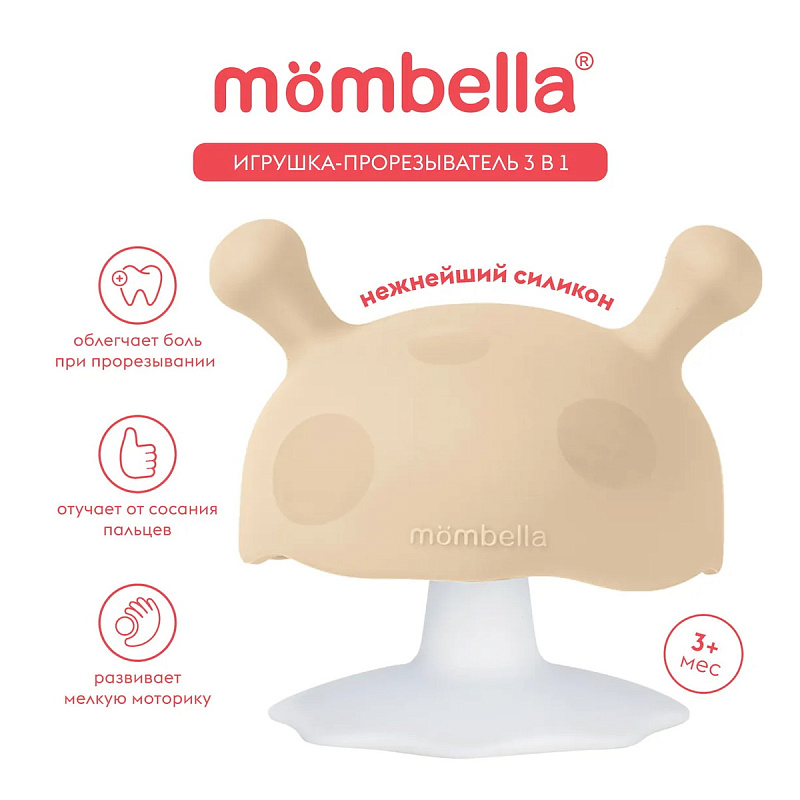 Прорезыватель Mombella Грибочек, силиконовый бежевый