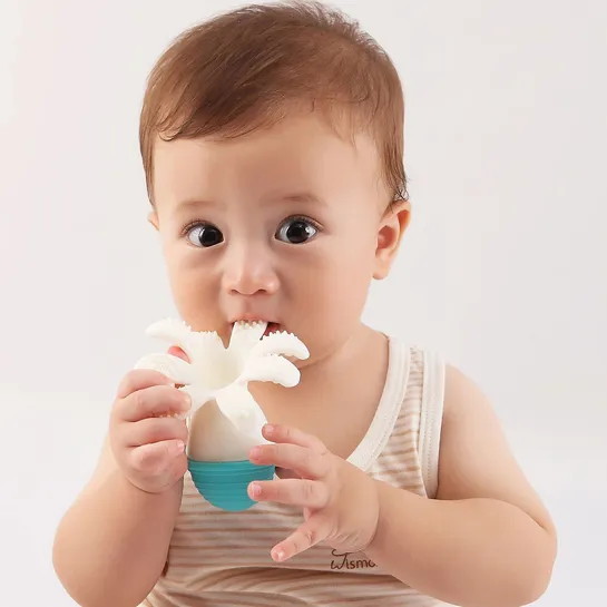 Прорезыватель Mombella Осьминог, силиконовый голубой