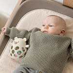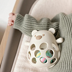 Силиконовый мишка с шариком — это и прорезыватель, и погремушка: в качестве мягкого прорезывателя он помогает малышам и детям постарше пережить появление первых зубов. Шероховатая поверхность мягко массирует десны и снимает неприятную зубную боль. В качестве погремушки мишка идеально подходит для маленьких ручек и пальчиков. С множеством отверстий, отдельными элементами и разной текстурой весело играть, и это помогает развивать осязание. Встроенный шарик внутри обеспечивает дополнительную акустическую стимуляцию и превращает каждое встряхивание в приятное занятие.