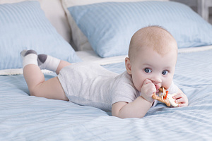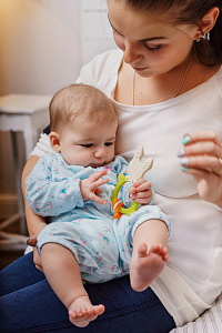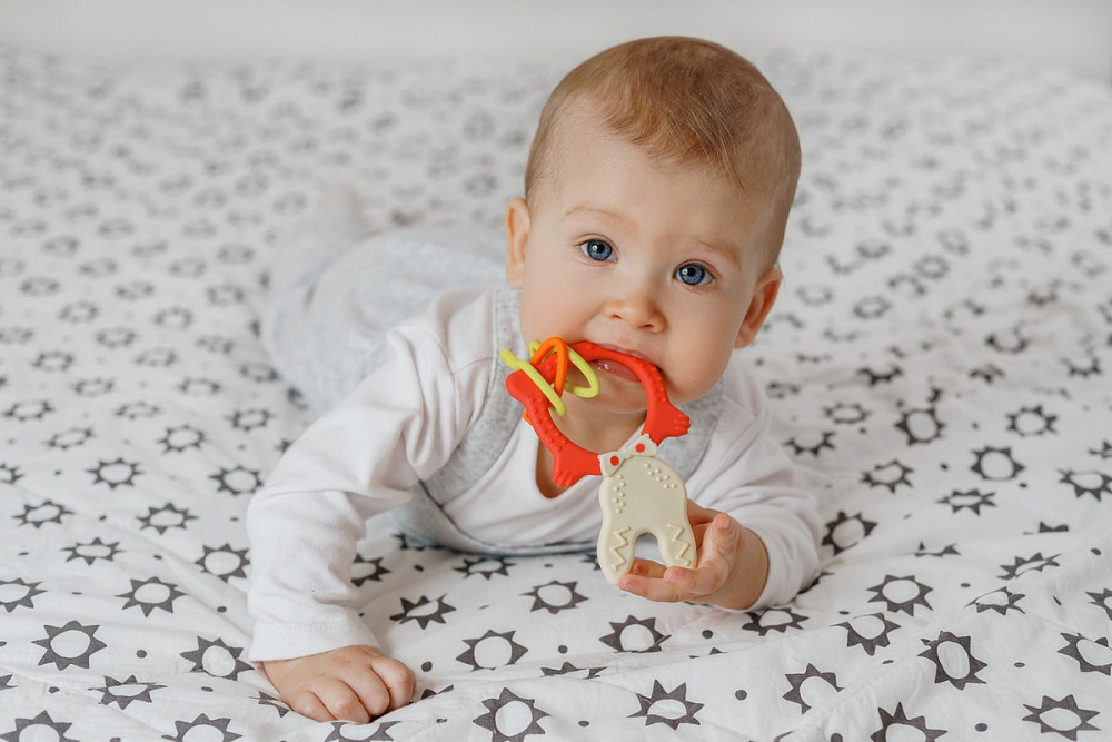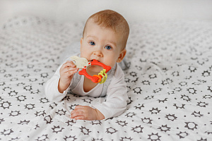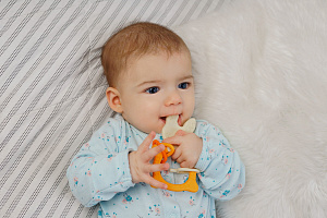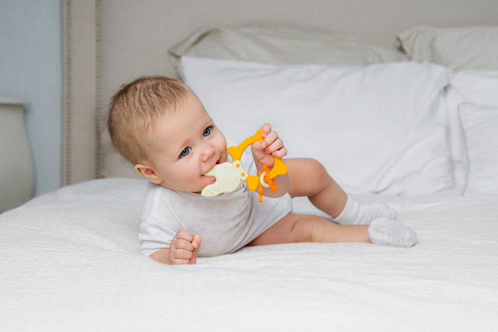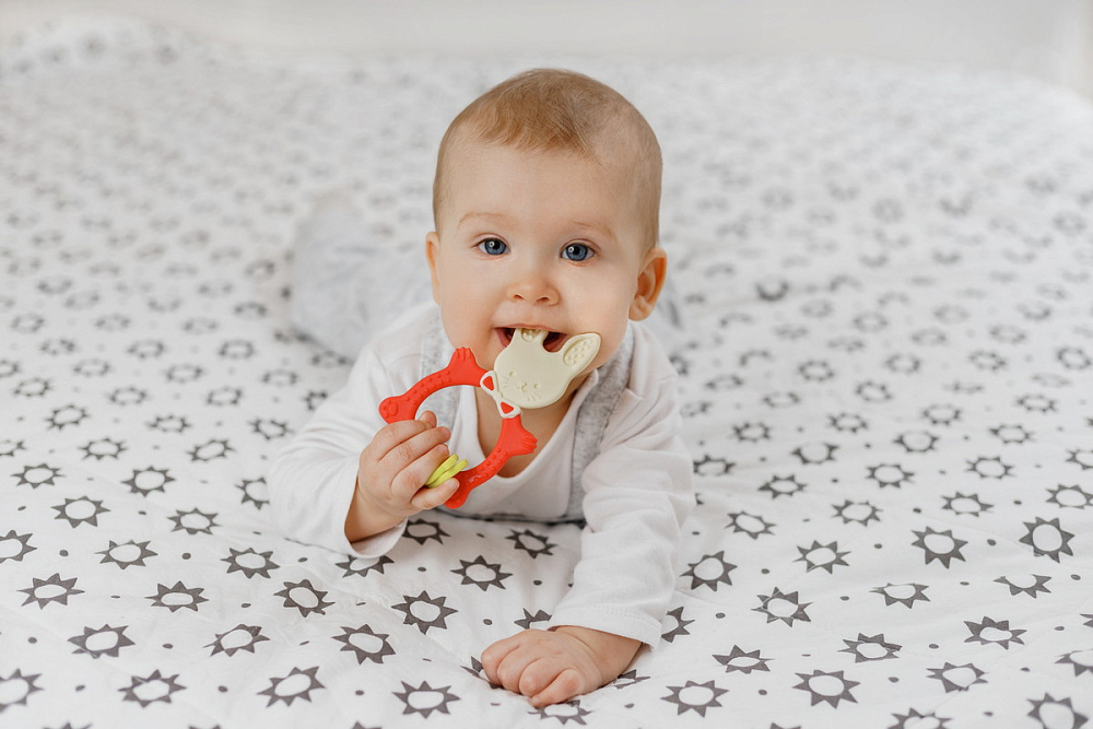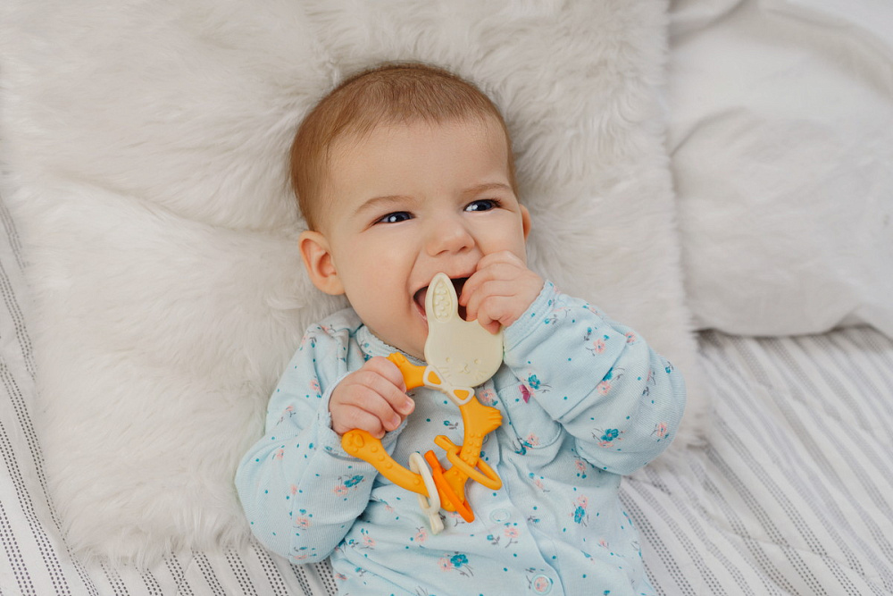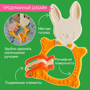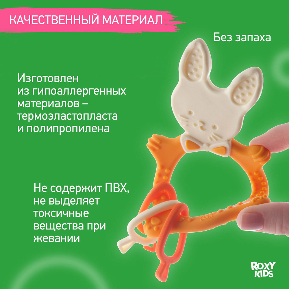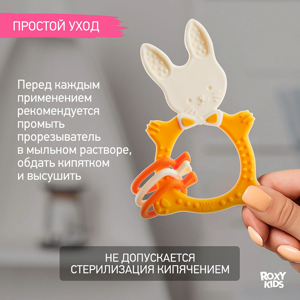 Прорезыватель для зубов BUNNY TEETHER от ROXY-KIDS подходит для всех стадий прорезывания зубов у малышей. Он состоит из элементов различной степени жесткости, что позволяет малышу использовать на протяжении всего времени прорезывания. На начальном этапе, когда у малыша раздражены десны, он может чесать их о мягкую рельефную голову зайчика. На завершающем этапе малыш сможет грызть более твердое тело и твердые морковки для лучшего эффекта. BUNNY TEETHER пригодится даже при прорезывания жевательных зубов, потому что ушки зайца по форме похожи на капу, что позволит малышу снять зуд с самых дальних десен. Прорезыватель сделан из безопасных гипоаллергенных материалов (термоэластопласта и полипропилена), так что ребенок может грызть его целыми днями. Еще одна отличительная особенность BUNNY TEETHER это тело, сделанное в форме кольца, которое малыш сможет удобно держать. В ассортименте ROXY-KIDS прорезыватели BUNNY TEETHER представлены в нескольких цветах. Соответствует стандартам безопасности товаров для детей.