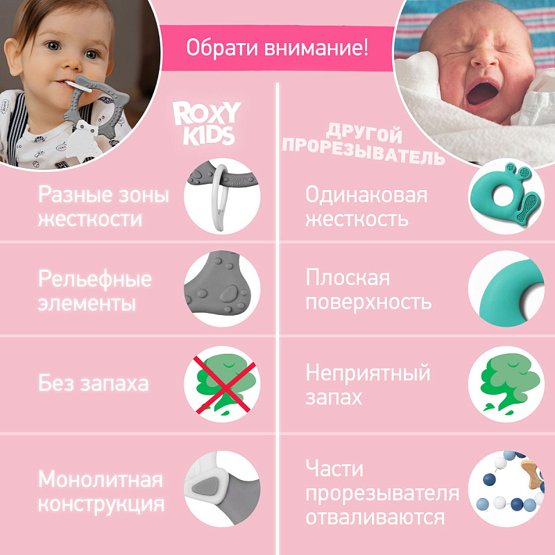 Прорезыватель для зубов FOX TEETHER от ROXY-KIDS подходит для всех стадий прорезывания зубов у малышей. Он состоит из элементов различной степени жесткости, что позволяет малышу использовать на протяжении всего времени прорезывания. На начальном этапе, когда у малыша раздражены десны, он может чесать их о мягкую рельефную голову лисенка. На завершающем этапе малыш сможет грызть более твердое тело и твердый хвост для лучшего эффекта. Прорезыватель сделан из безопасных гипоаллергенных материалов (термоэластопласта и полипропилена), так что ребенок может грызть его целыми днями. Еще одна отличительная особенность FOX TEETHER это тело, сделанное в форме кольца, которое малыш сможет удобно держать. В ассортименте ROXY-KIDS прорезыватели FOX TEETHER представлены в нескольких цветах. Соответствует стандартам безопасности товаров для детей.
