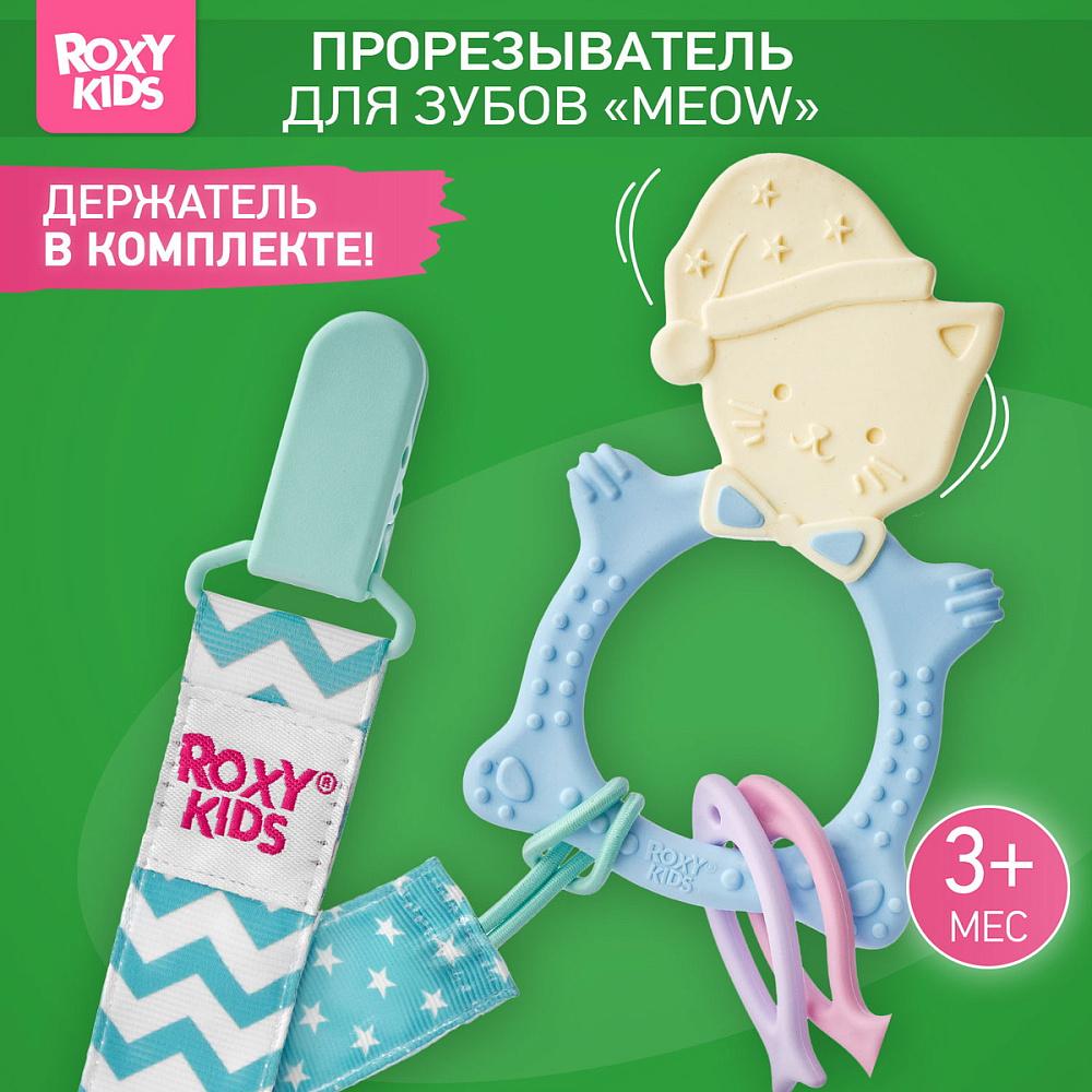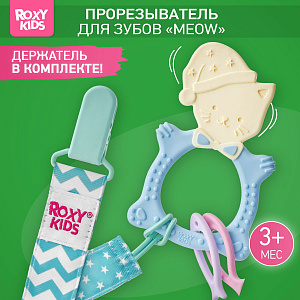 Прорезыватель Roxy-Kids Meow Teether с держателем RMT-001SC голубой