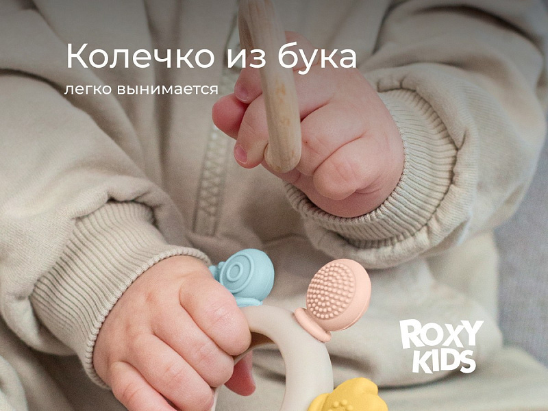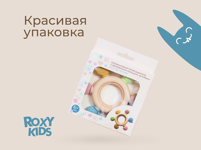 Прорезыватель Roxy-Kids силиконовый, с кольцом из бука RWDN-001 Штурвал