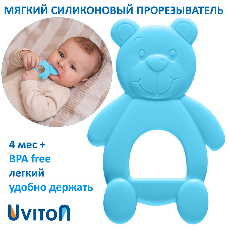 Мягкий силиконовый прорезыватель Bear от Uviton поможет малышу в период прорезывания первых зубов. С ним легче справится с неприятными ощущениями и дискомфортом. В эти моменты малыш может быть особенно капризным и раздражительным. Чтобы помочь ребенку пережить этот период и облегчить болезненное состояние, прорезыватель можно подвесить к держателю для пустышки, предварительно охладить. Прорезыватель изготовлен из мягкого пищевого силикона, не имеет запаха и вкуса. Он поможет унять зуд в воспаленных деснах, не нанося им вреда. Прорезыватель отлично подходит для самых маленьких малышей, у которых только начинаются резаться зубки.