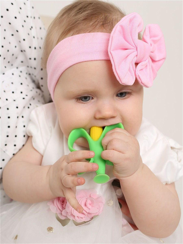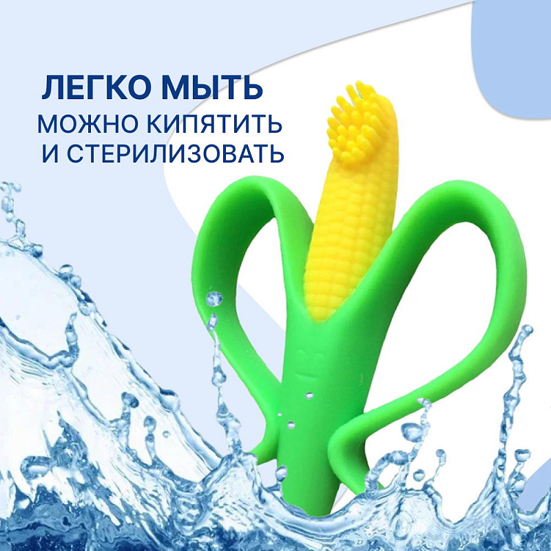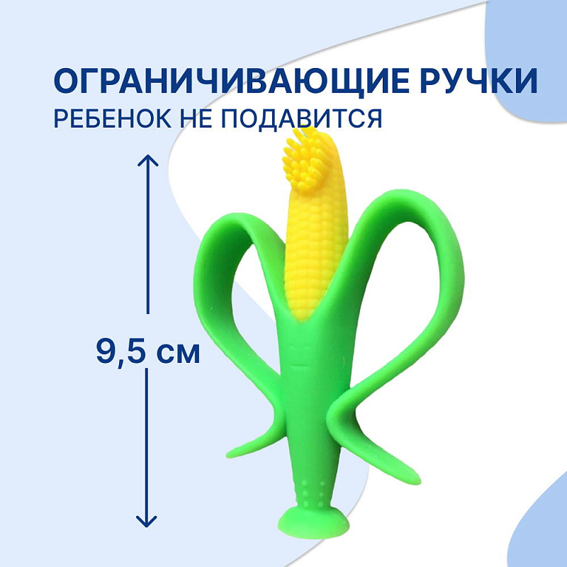 Небольшой размер прорезывателя помогает легко поместиться в маленьких ручках, а листочки кукурузы, согнутые в ,так называемые, ручки, служат для надежной фиксации и удобного захвата игрушки.
