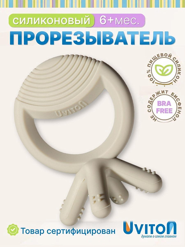 Прорезыватель силиконовый от Uviton поможет малышу в период прорезывания первых зубов. С ним легче справится с неприятными ощущениями и дискомфортом. В эти моменты ребенок может быть особенно капризным и раздражительным.