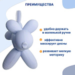 Щеточка на хвостике позволяют нанести успокаивающий гель при прорезывании зубов и распределить его по деснам, не нанося им вреда. Рельеф на лапках и щеточке обеспечивает бережный массаж десен. Ребенок сам выбирает, какой элемент ему нравится грызть больше. Прорезыватель можно охлаждать в холодильнике.