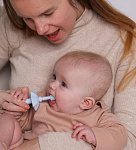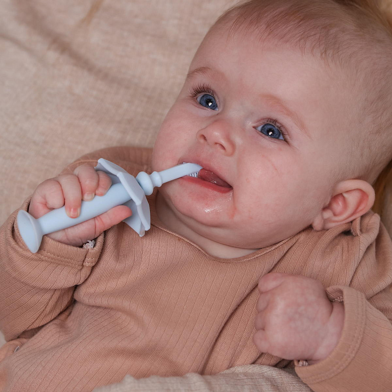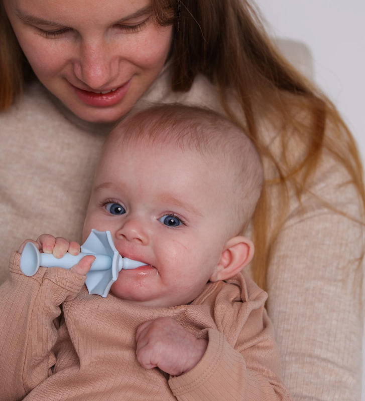Силиконовый прорезыватель можно охлаждать в холодильнике или использовать вместе со специальным гелем при прорезывании зубов.