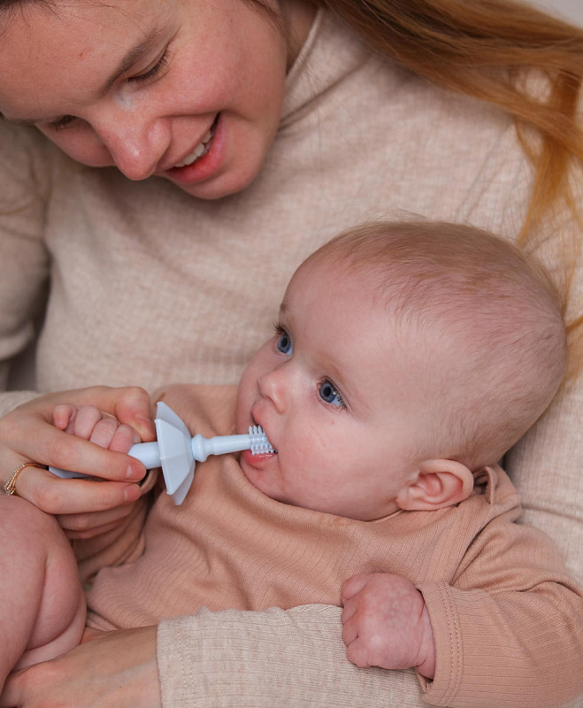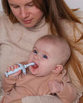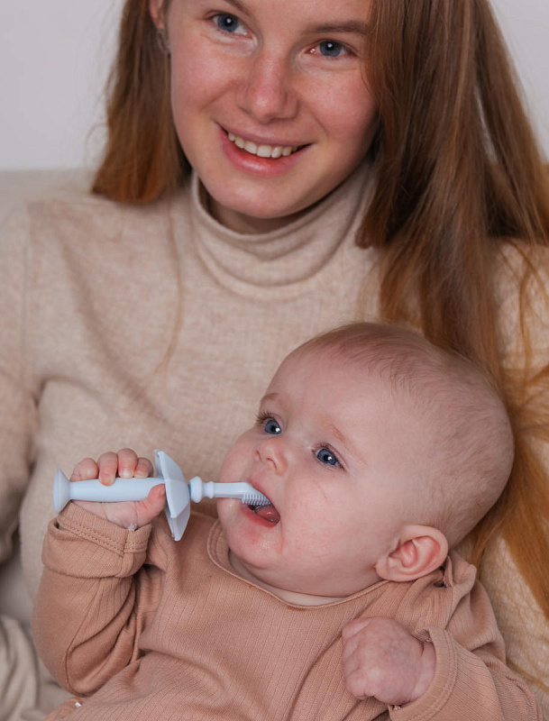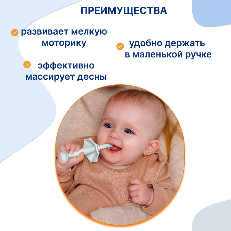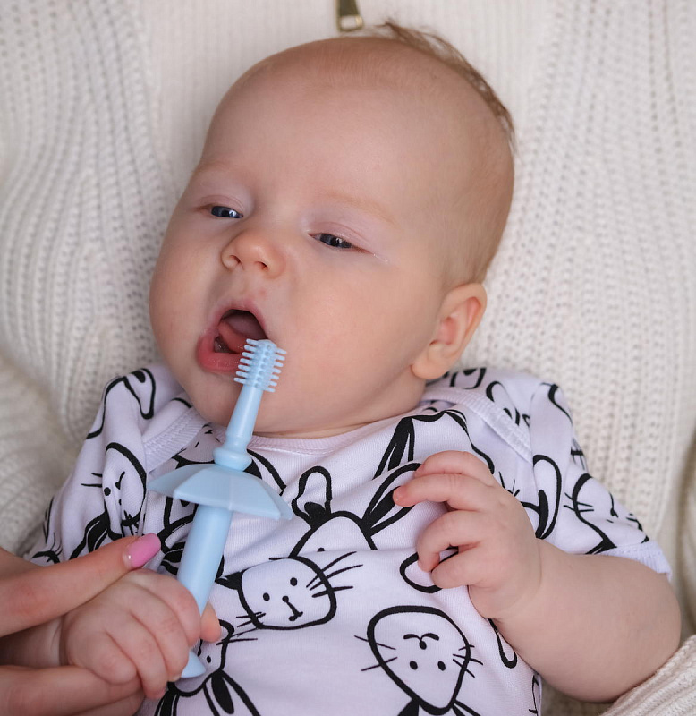 вторая щеточка - чистит первые зубки и массирует десны, не травмируя их;