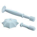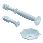 В наборе 2 сменные насадки, имеющие разную форму и степень жесткости щетинок: мягкий массажер и более жесткий, что дает возможность выбирать размер и жесткость в зависимости от предпочтений малыша.