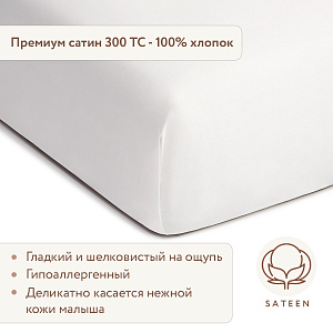 Сатиновая простыня на резинке — красивое и практичное дополнение к вашему постельному комплекту. Натуральный хлопок экологичен и безопасен для ребенка, простыня деликатно касается кожи малыша нежной шелковистой поверхностью.