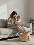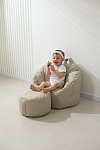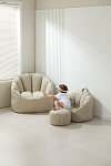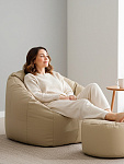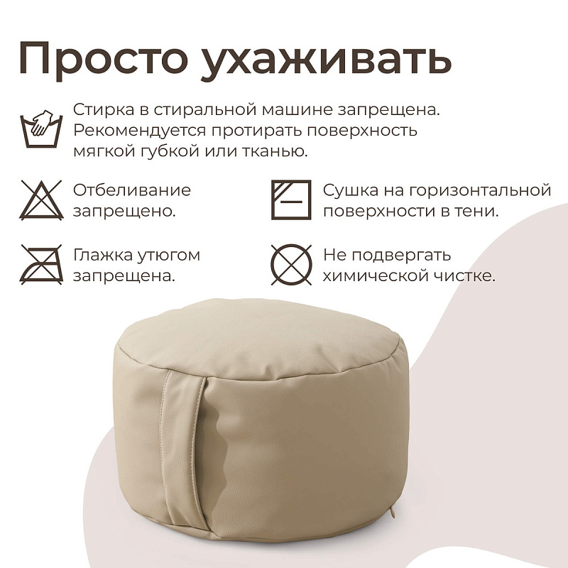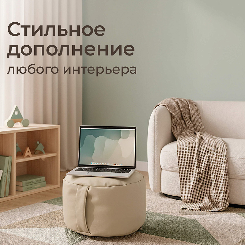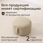 Внутренний наполнитель бежевого пуфа — вспененный полипропилен (EPP) в виде шариков — обеспечивает мягкость и упругость, позволяя ему быстро восстанавливать форму после использования. Это делает его не только комфортным, но и долговечным, способным выдерживать значительные нагрузки до 50 кг.