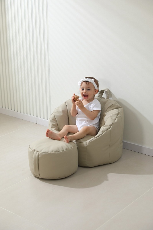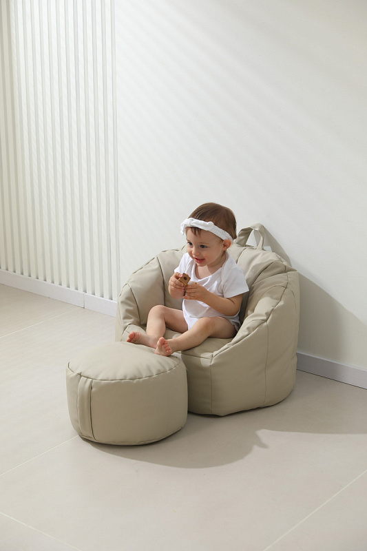 Экокожа, из которой изготовлен пуф, не только приятна на ощупь, но и легко очищается от загрязнений, что особенно важно для детской комнаты. Это позволяет поддерживать чистоту и гигиену без особых усилий.