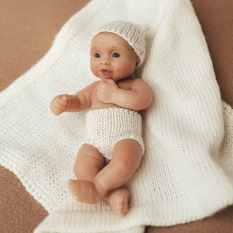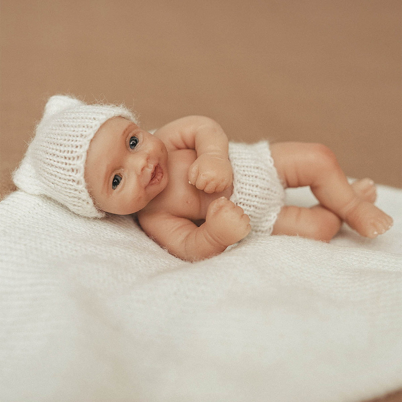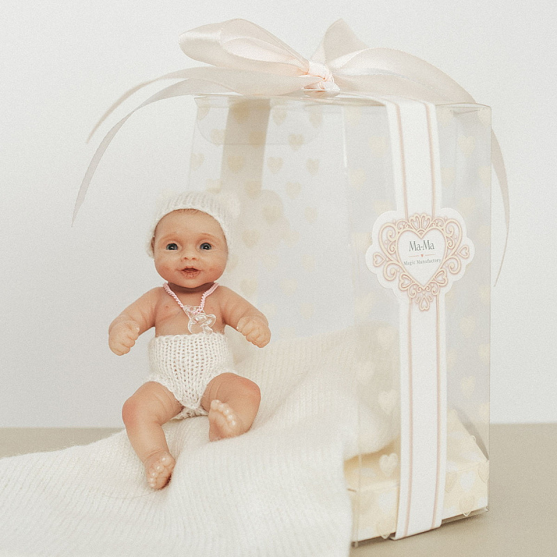 Крошечный пупс с тёплой улыбкой умещается на ладони — так и тянет укутать пледом и устроить мини-колыбель. Его формат отлично подходит для игр в дороге и трогательных фотосессий.
