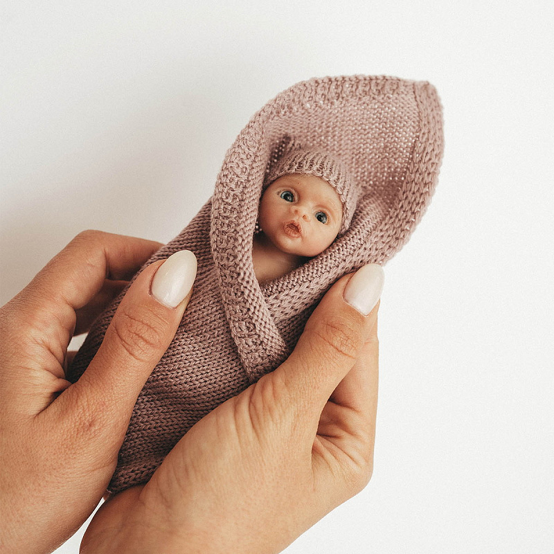 Крошечный пупс с тёплой улыбкой умещается на ладони — так и тянет укутать пледом и устроить мини-колыбель. Его формат отлично подходит для игр в дороге и трогательных фотосессий.