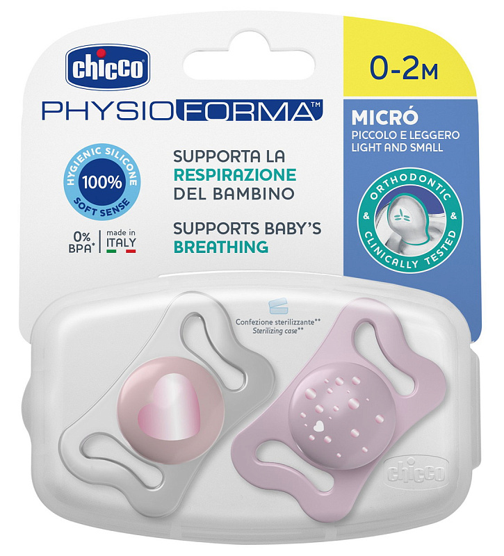 Пустышка Chicco PhysioForma Micro силиконовая 0-2 мес, 2 шт. Pink