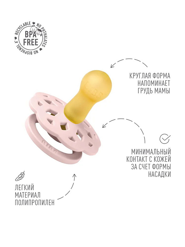 Пустышки BIBSизготавливаются из экологичных, на 100% безопасных материалов. Сосок у пустышки сделан из натурального каучука (латекса), а защитная накладка (шилдик) – из полипропилена.