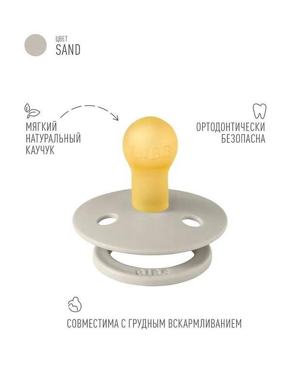 Пустышки BIBS изготавливаются из экологичных, на 100% безопасных материалов. Сосок у пустышки сделан из натурального каучука (латекса), а защитная накладка (шилдик) — из полипропилена. Изогнутая форма накладки минимизирует контакт с чувствительной и нежной кожей вокруг рта ребенка.