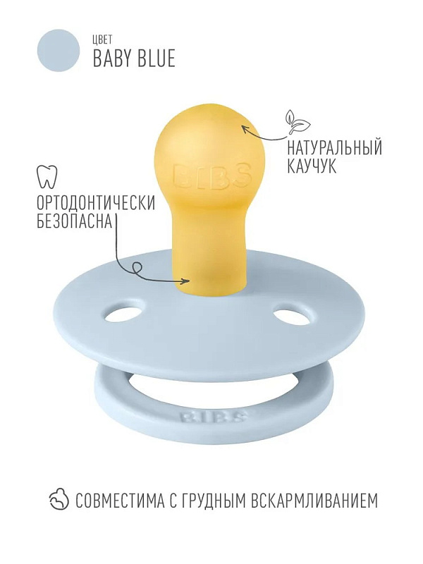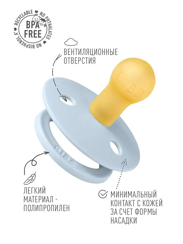 Пустышки BIBS изготавливаются из экологичных, на 100% безопасных материалов. Сосок у пустышки сделан из натурального каучука (латекса), а защитная накладка (шилдик) — из полипропилена. Изогнутая форма накладки минимизирует контакт с чувствительной и нежной кожей вокруг рта ребенка.