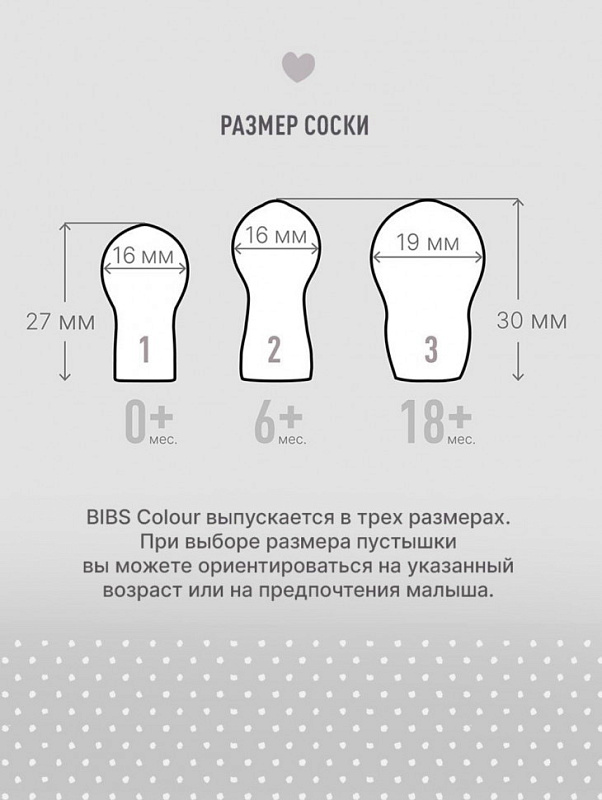 Классический круглый сосок напоминает сосок матери, благодаря чему BIBS Colour идеально подходит малышам с рождения и совместима с грудным вскармливанием.