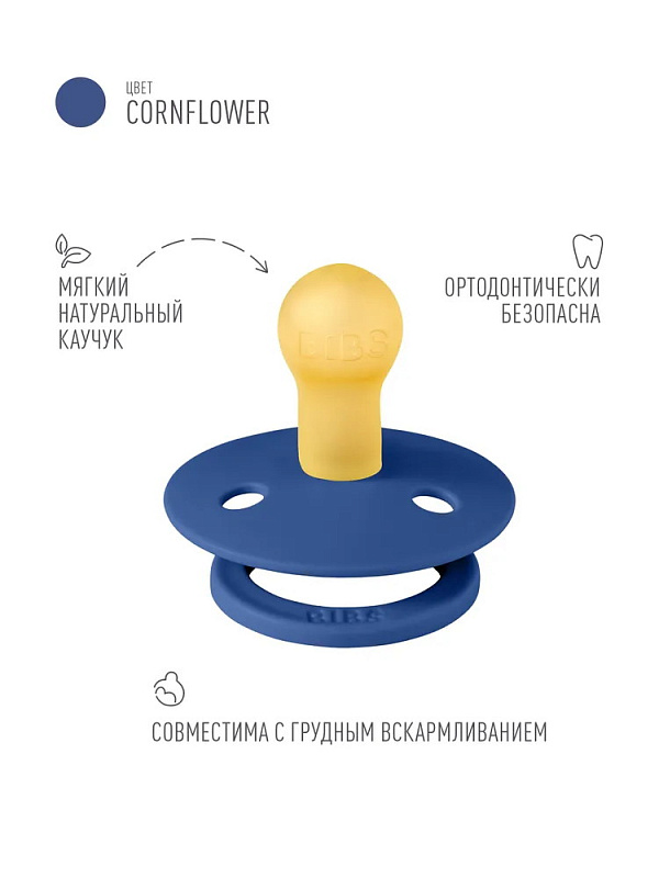 Пустышки BIBS изготавливаются из экологичных, на 100% безопасных материалов. Сосок у пустышки сделан из натурального каучука (латекса), а защитная накладка (шилдик) — из полипропилена. Изогнутая форма накладки минимизирует контакт с чувствительной и нежной кожей вокруг рта ребенка.