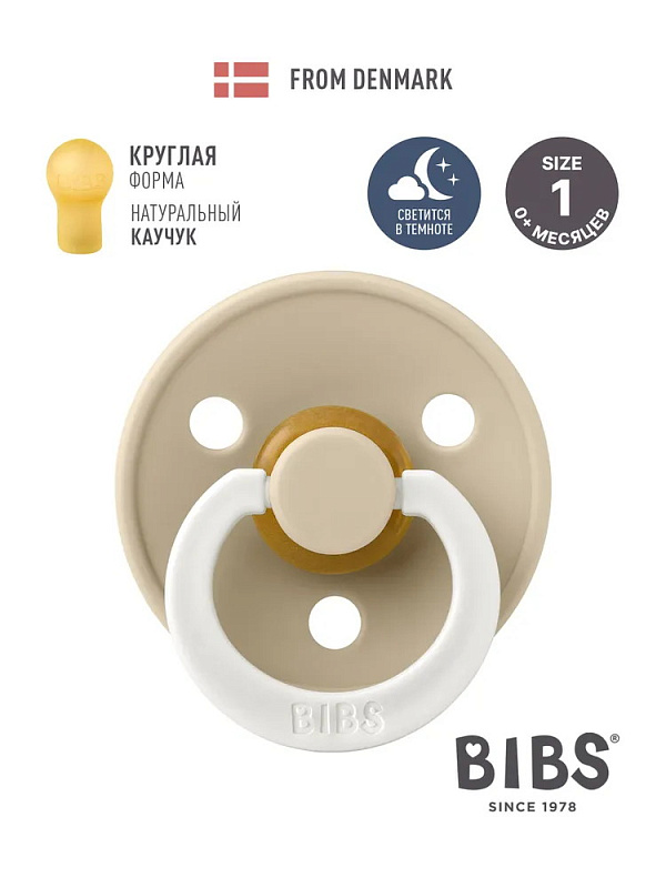 Пустышка латексная Bibs Colour Glow ночная, 0+ 100257 Vanilla