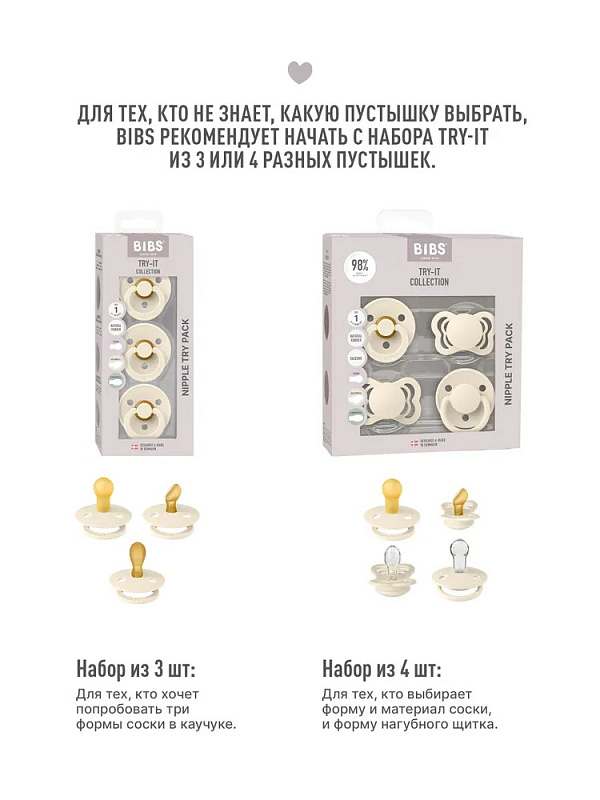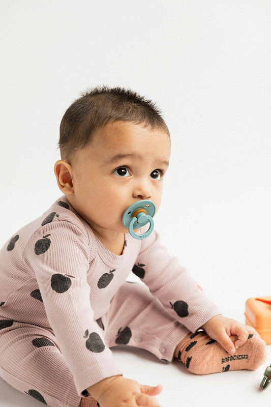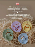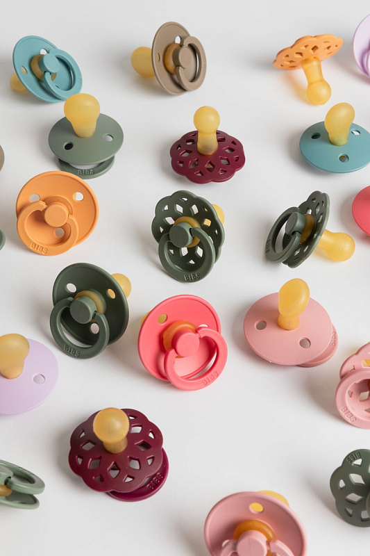 Пустышки BIBS изготавливаются из экологичных, на 100% безопасных материалов. Сосок у пустышки сделан из натурального каучука (латекса), а накладка (шилдик) — из полипропилена. Изогнутая форма накладки минимизирует контакт с чувствительной и нежной кожей вокруг рта ребенка.