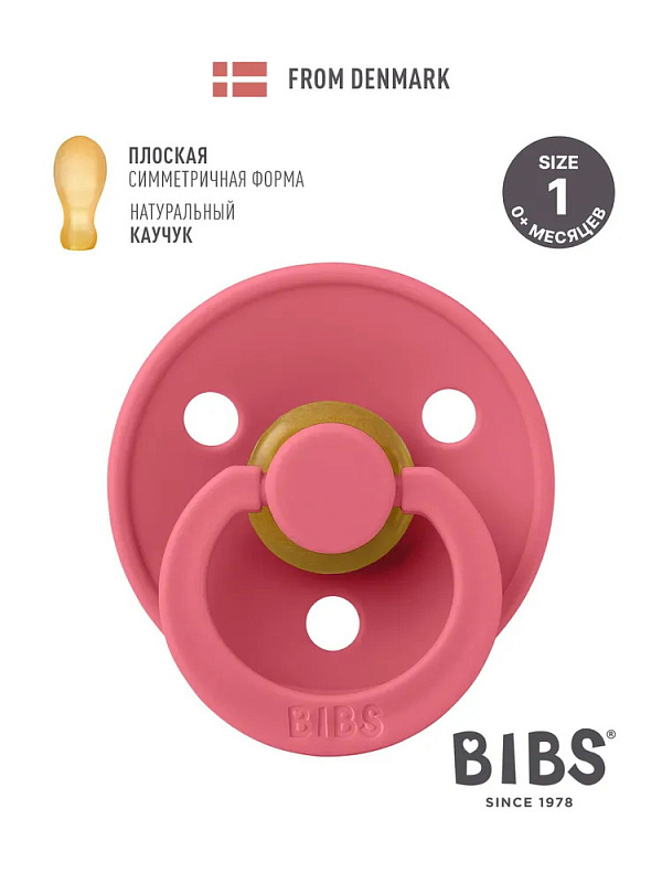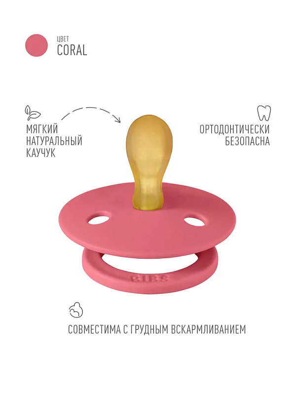 Пустышка латексная Bibs Colour Symmetrical, 0+ 121262 Coral
