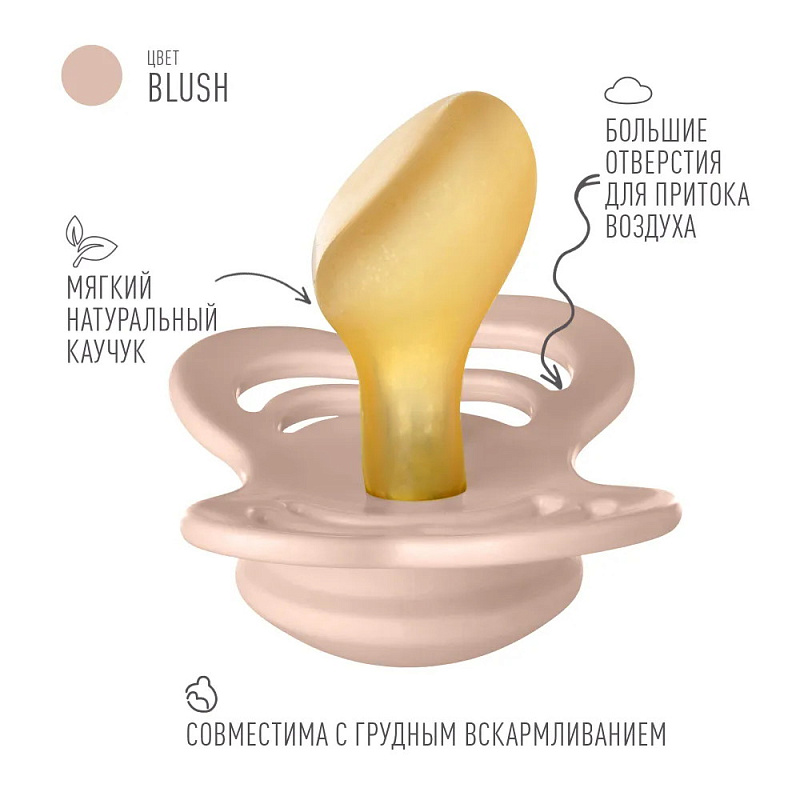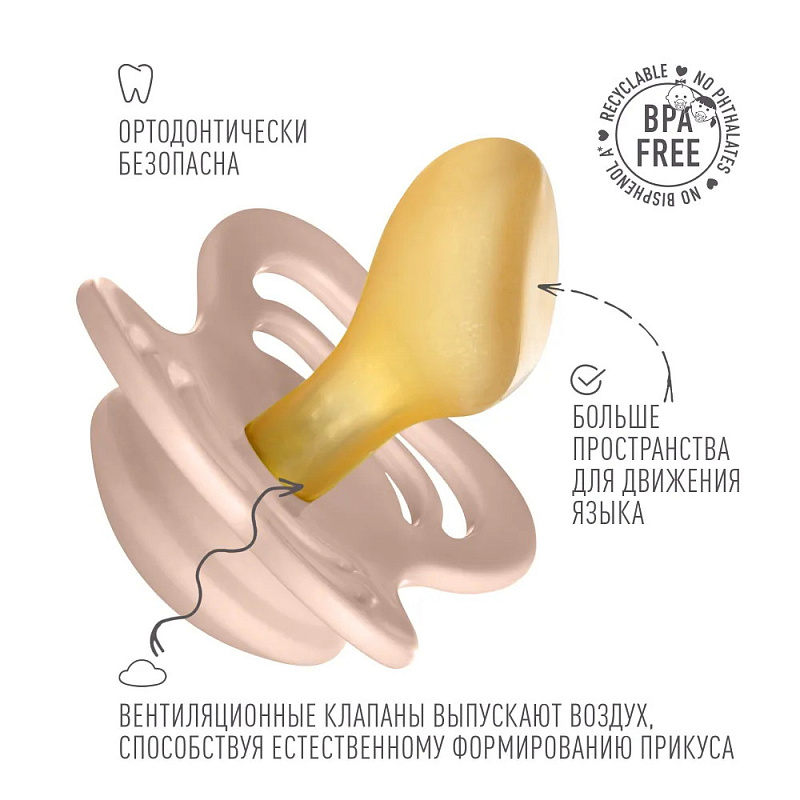 Пустышки BIBS изготавливаются из экологичных, на 100% безопасных материалов. Сосок выполнен из натурального каучука (латекса), а защитная накладка (шилдик) — из полипропилена. Дизайн накладки продуман таким образом, чтобы минимизировать контакт с чувствительной и нежной кожей вокруг рта ребенка.