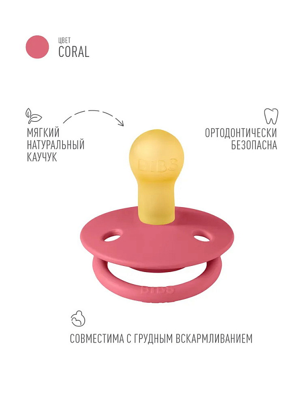 Пустышка латексная Bibs De Lux, 0+ 1110262 Coral