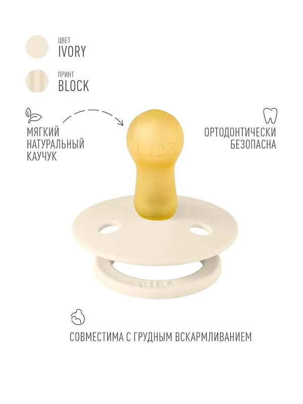 Пустышка латексная Bibs Studio Colour - Block, 0+ 10016245 Ivory Vanilla
