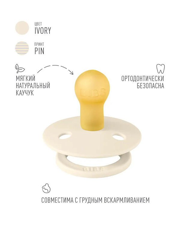 Пустышка латексная Bibs Studio Colour - Pin, 0+ 10015322 Ivory Hush