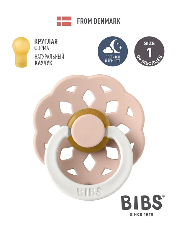 Пустышка латексная ночная Bibs Boheme Glow, 0+ 210256 Blush