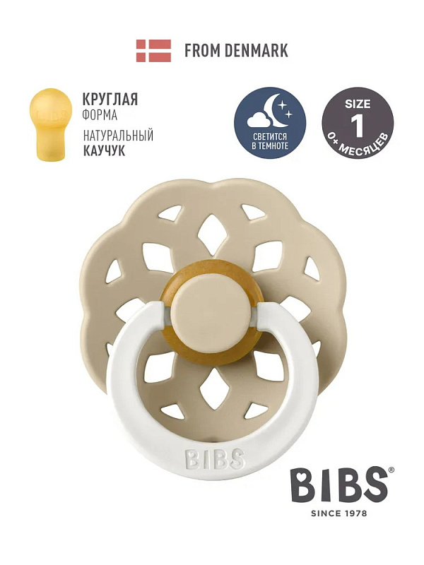 Пустышка латексная ночная Bibs Boheme Glow, 0+ 210257 Vanilla