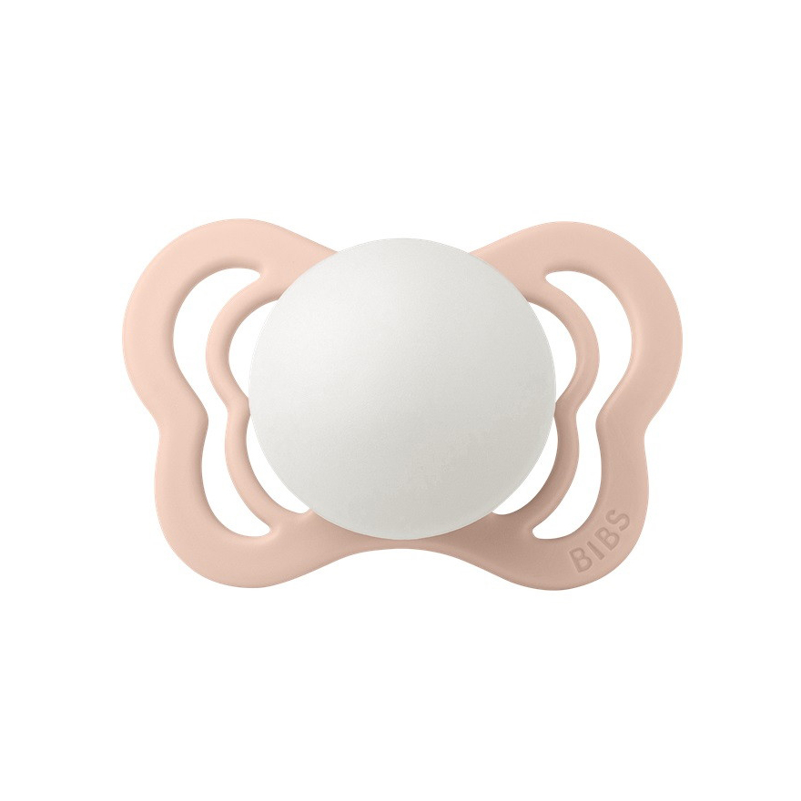 BIBS Couture — пустышка с оригинальной накладкой в виде бабочки и соском, который имеет изогнутую верхнюю часть для естественного прилегания к нёбу ребенка и скошенный кончик для удобного размещения языка. Форма накладки поможет правильно расположить соску во рту. В размере 0+ подходит для недоношенных детей.