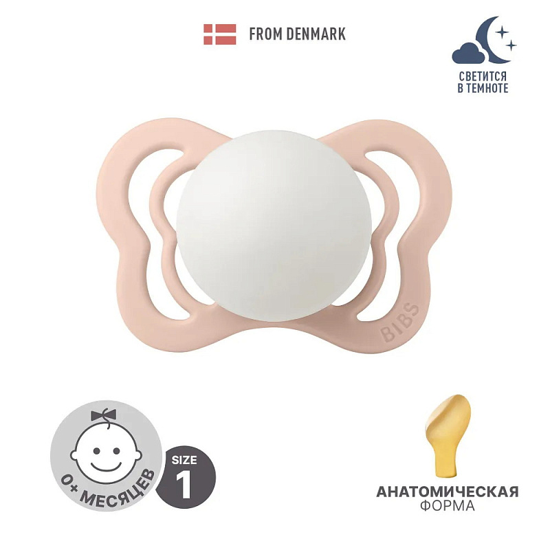 Пустышка латексная ночная Bibs Couture Glow, 0+ 1410256 Blush