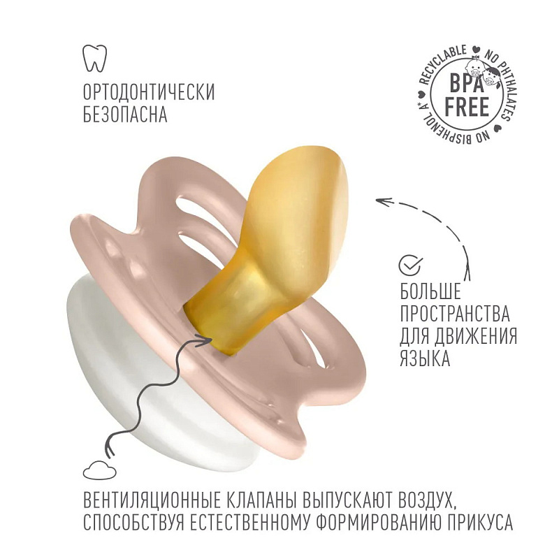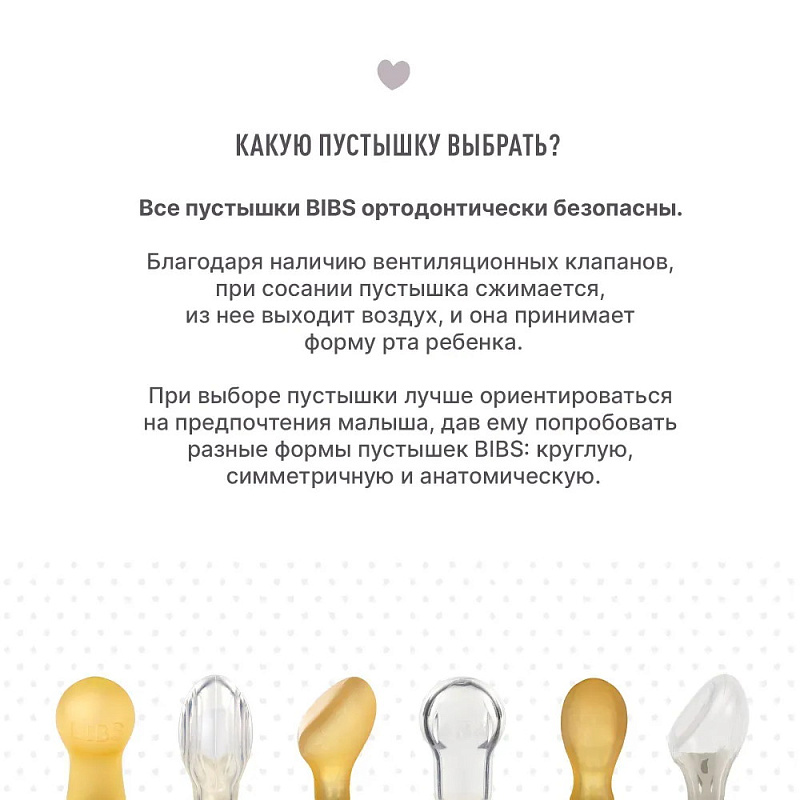 В каждой пустышке BIBS есть специальные вентиляционные клапаны, благодаря которым она является ортодонтически безопасной.