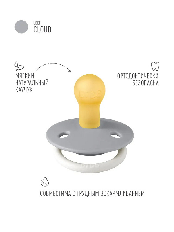 Пустышки BIBS изготавливаются из экологичных, на 100% безопасных материалов. Сосок выполнен из натурального каучука (латекса), а защитная накладка (шилдик) и ручка — из полипропилена. Изогнутая форма накладки с тремя круглыми отверстиями минимизирует контакт с чувствительной и нежной кожей вокруг рта ребенка.