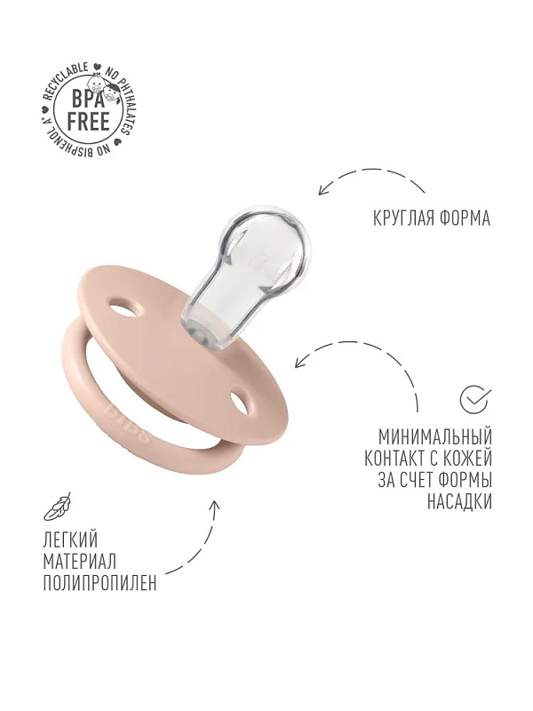 Классический круглый сосок пустышки BIBS De Lux по форме и размеру напоминает сосок матери, благодаря чему она идеально подходит малышам с рождения.