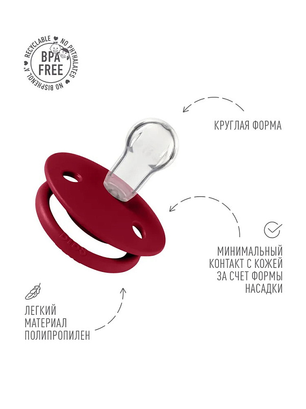 Пустышки BIBS изготавливаются из экологичных, на 100% безопасных материалов. Сосок у пустышки сделан из гипоаллергенного силикона без запаха и вкуса. Силиконовая пустышка обладает высокой прочностью и хорошо массирует дёсны во время прорезывания зубов. Защитная накладка (шилдик) сделана из полипропилена. Изогнутая форма накладки с тремя круглыми отверстиями минимизирует контакт с чувствительной и нежной кожей вокруг рта ребенка.