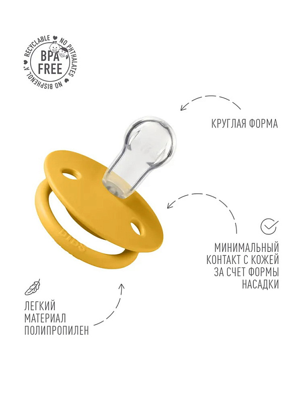 Пустышки BIBS изготавливаются из экологичных, на 100% безопасных материалов. Сосок у пустышки сделан из гипоаллергенного силикона без запаха и вкуса. Силиконовая пустышка обладает высокой прочностью и хорошо массирует дёсны во время прорезывания зубов. Защитная накладка (шилдик) сделана из полипропилена. Изогнутая форма накладки с тремя круглыми отверстиями минимизирует контакт с чувствительной и нежной кожей вокруг рта ребенка.