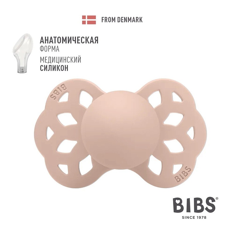 Пустышка силиконовая Bibs Infinity Anatomical, 0+ 421244 Blush