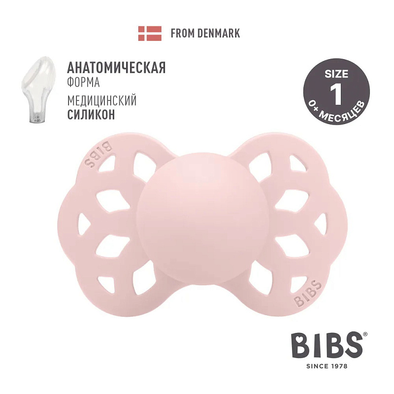 Пустышка силиконовая Bibs Infinity Anatomical, 0+ 421277 Blossom