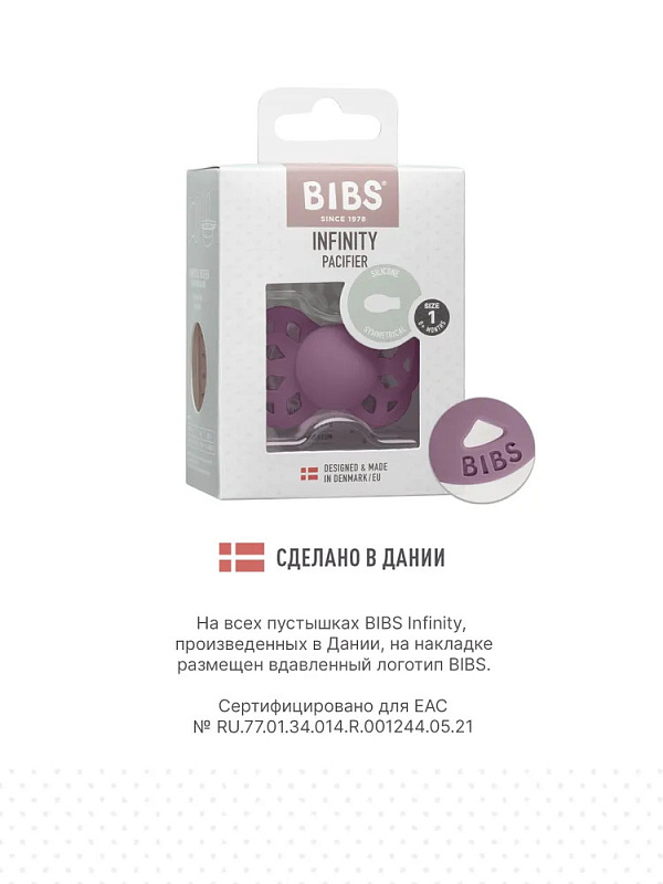Пустышки BIBS изготавливаются из экологичных, на 100% безопасных материалов. Сосок выполнен из гипоаллергенного силикона без запаха и вкуса, а накладка (шилдик) — из полипропилена. Силиконовая пустышка обладает высокой прочностью и хорошо массирует дёсны во время прорезывания зубов. Дизайн накладки продуман таким образом, чтобы минимизировать контакт с чувствительной и нежной кожей вокруг рта ребенка.
