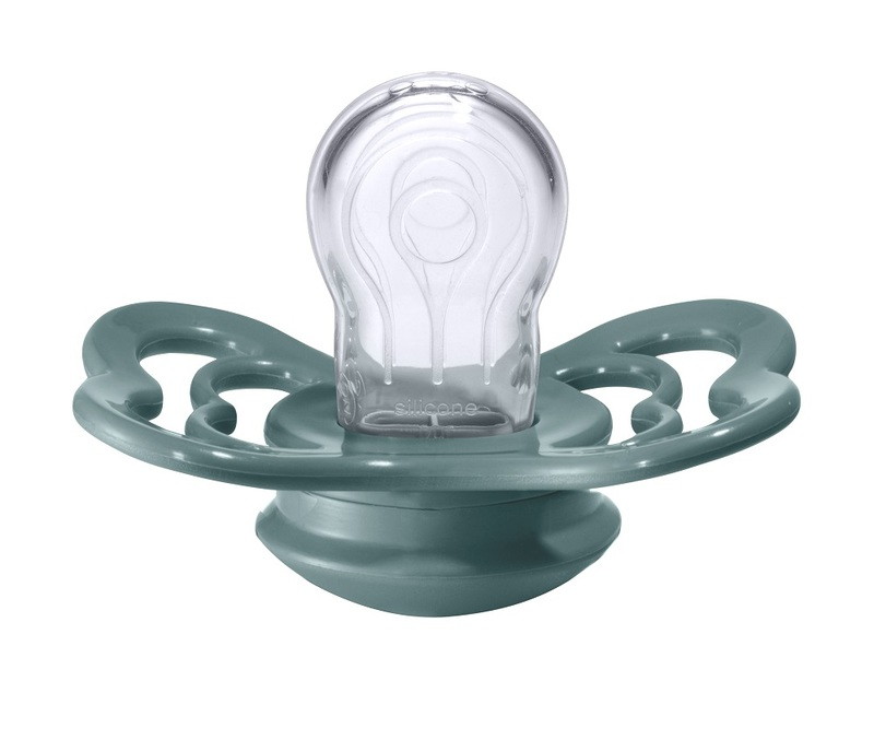 Пустышка Supreme имеет оригинальную фигурную накладку и сосок симметричной плоской каплевидной формы, который способствует правильному расположению языка и развитию челюстно-лицевых мышц малыша.